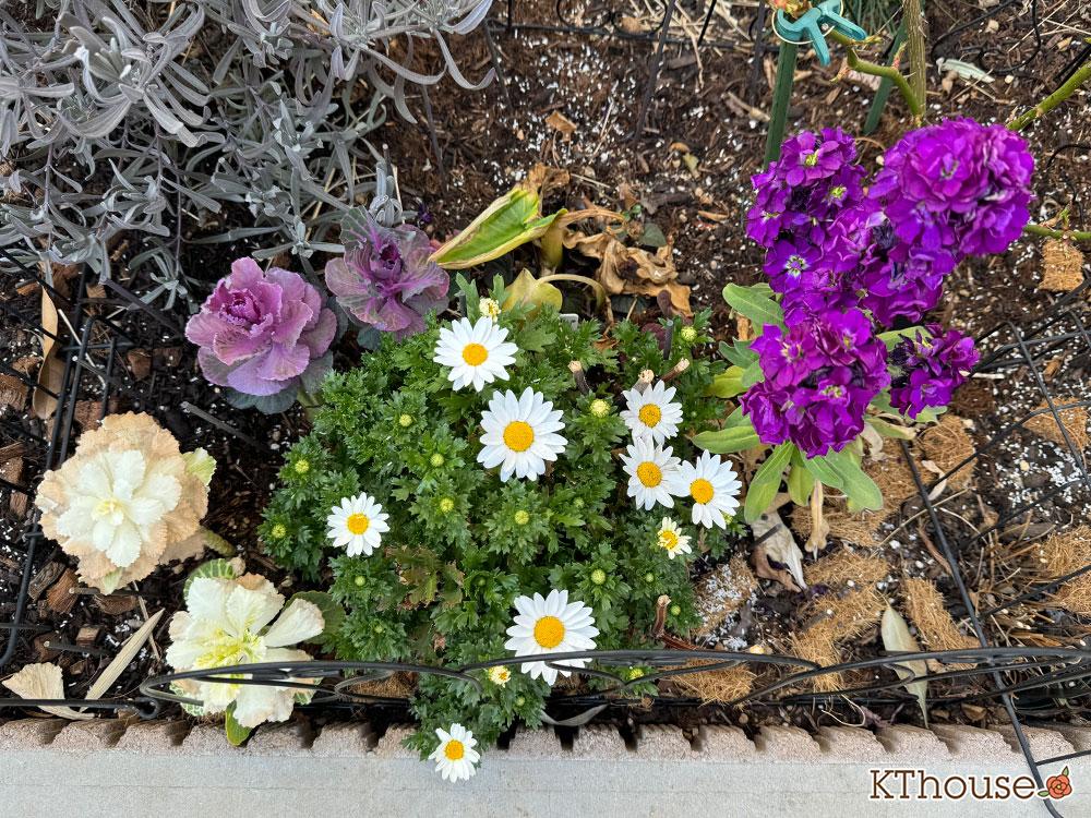 真冬の開花は少ないですが、秋に植えることで春のパフォーマンスが変わります。何を植えようか悩んでる方に、手間もいらず強健で晩春まで咲き続けてくれますし、こぼれ種で増える花でもあるため、コスパもよし!クリサンセマムをオススメします!😊