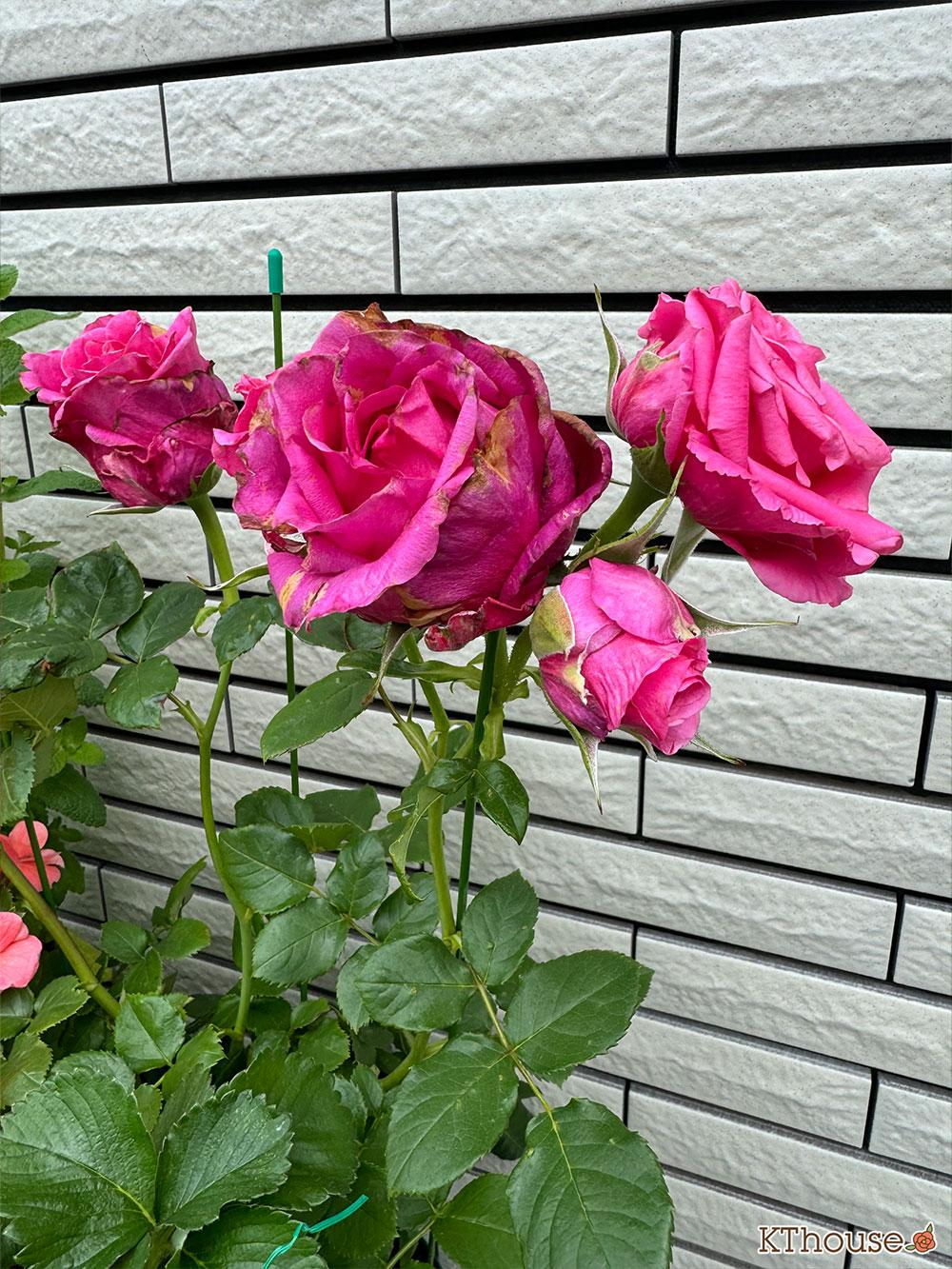 5/4 下の方から一輪咲いて来ました。ビビットなピンク色🩷が映えますね〜