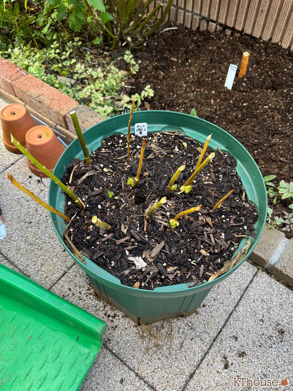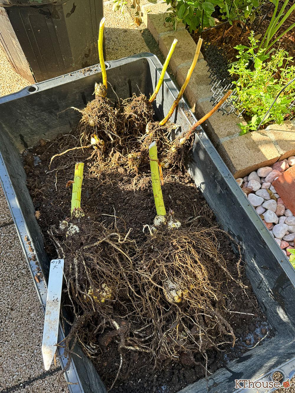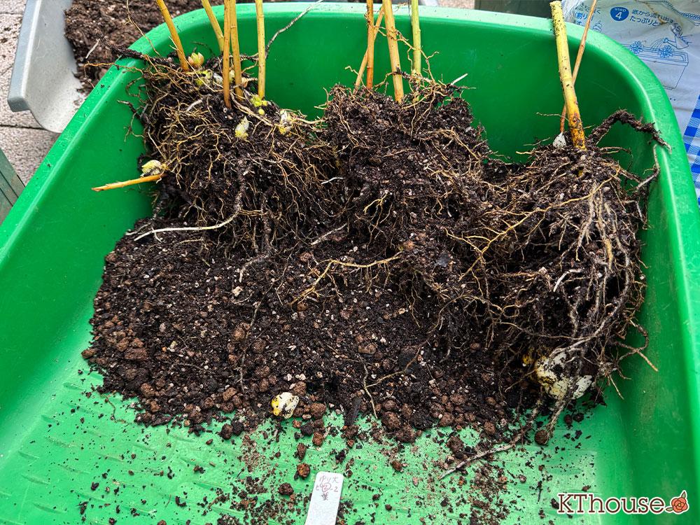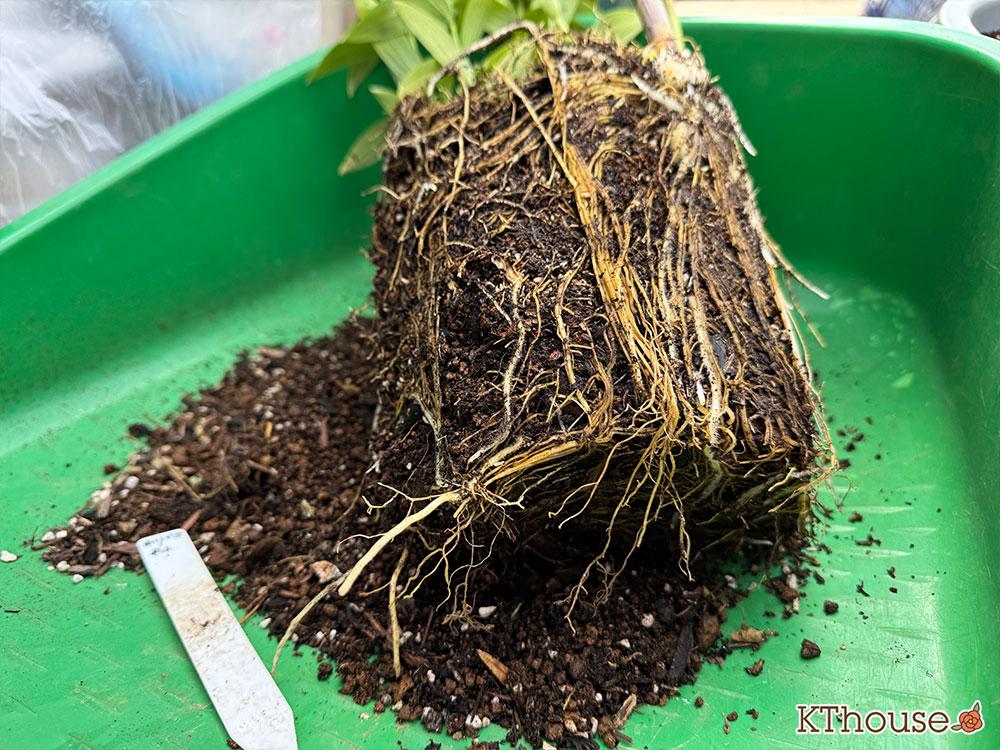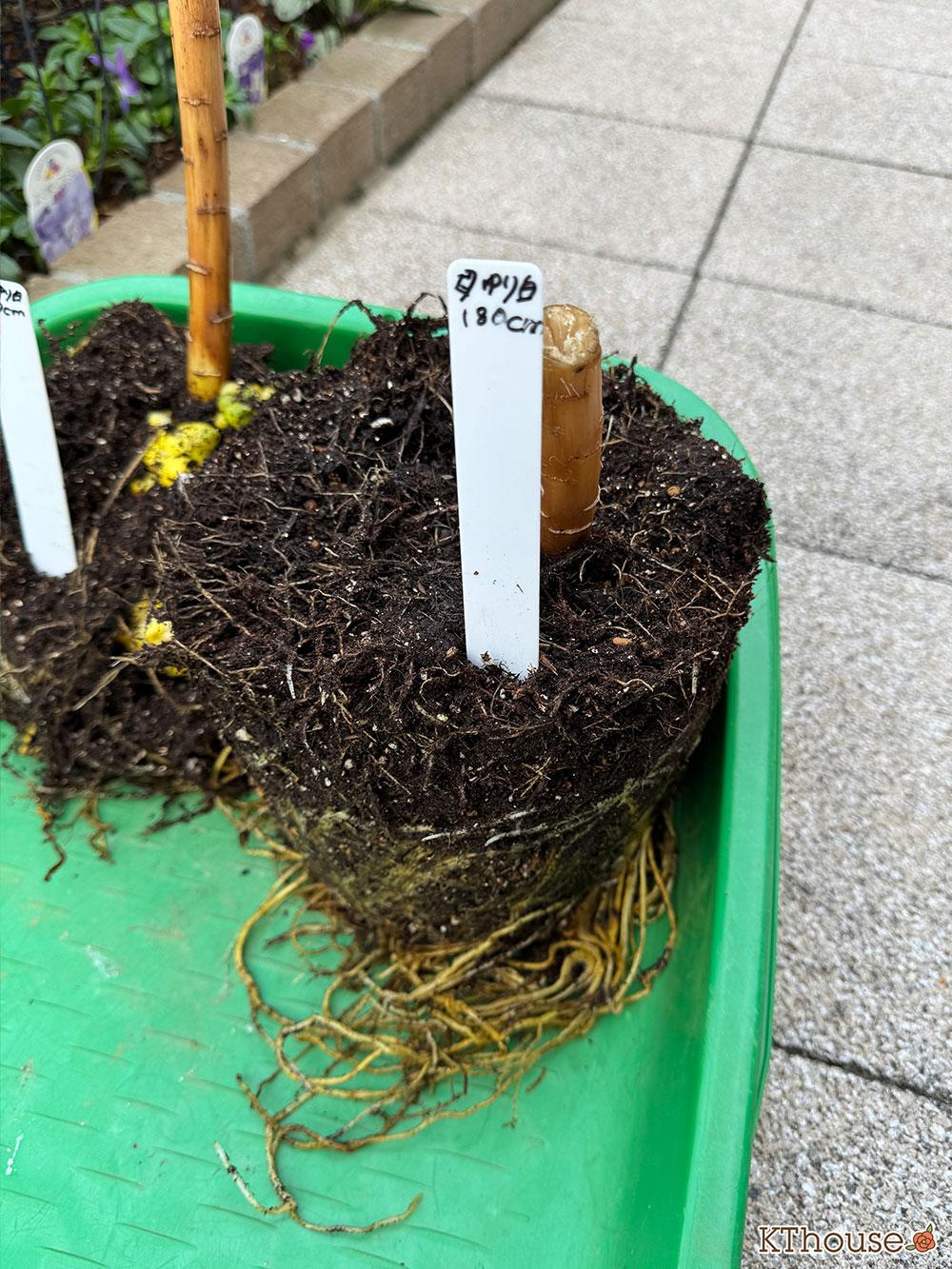 昨年植え替える際は、土を全部払って根も落として植えたのですが、今回は軽く土だけ払い花壇に植えました。根を落としてても今年咲いてくれたので問題なかったものの、本当は根を落とさないほうがいいんだとか🫢