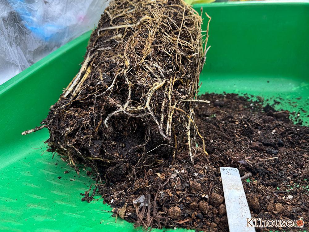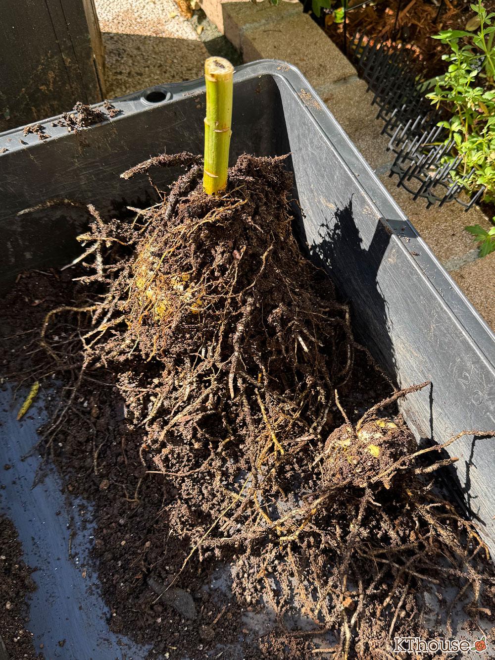 ゆりを鉢から出しました。大きい球根が2つ&小さな球根が4つです。