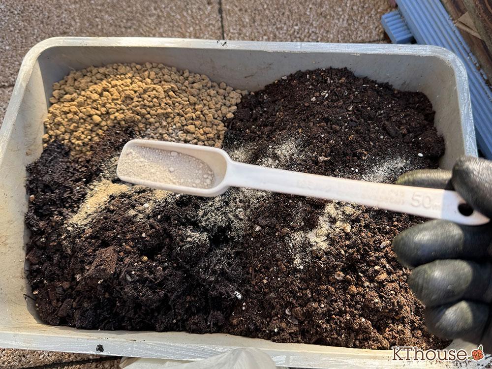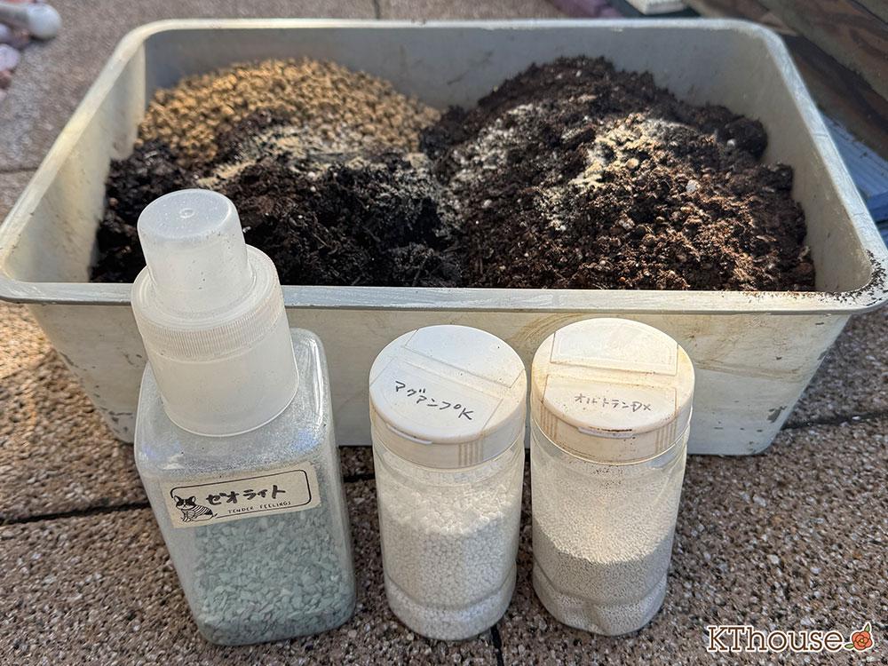 そして、ゼオライト、緩効性肥料のマグァンプKとオルトランDXも追加して、よく混ぜ合わせました。