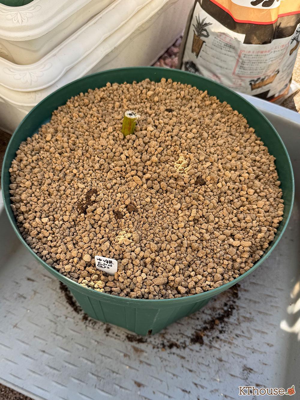 赤玉土は濡れると色が濃くなるため、水やりをしすぎないで済むと思ってのことです。ただ赤玉土は表土にすると乾くのもはやい気がするので注意が必要です🧐