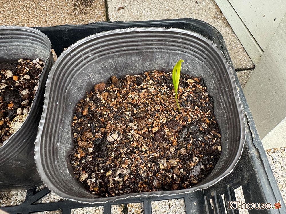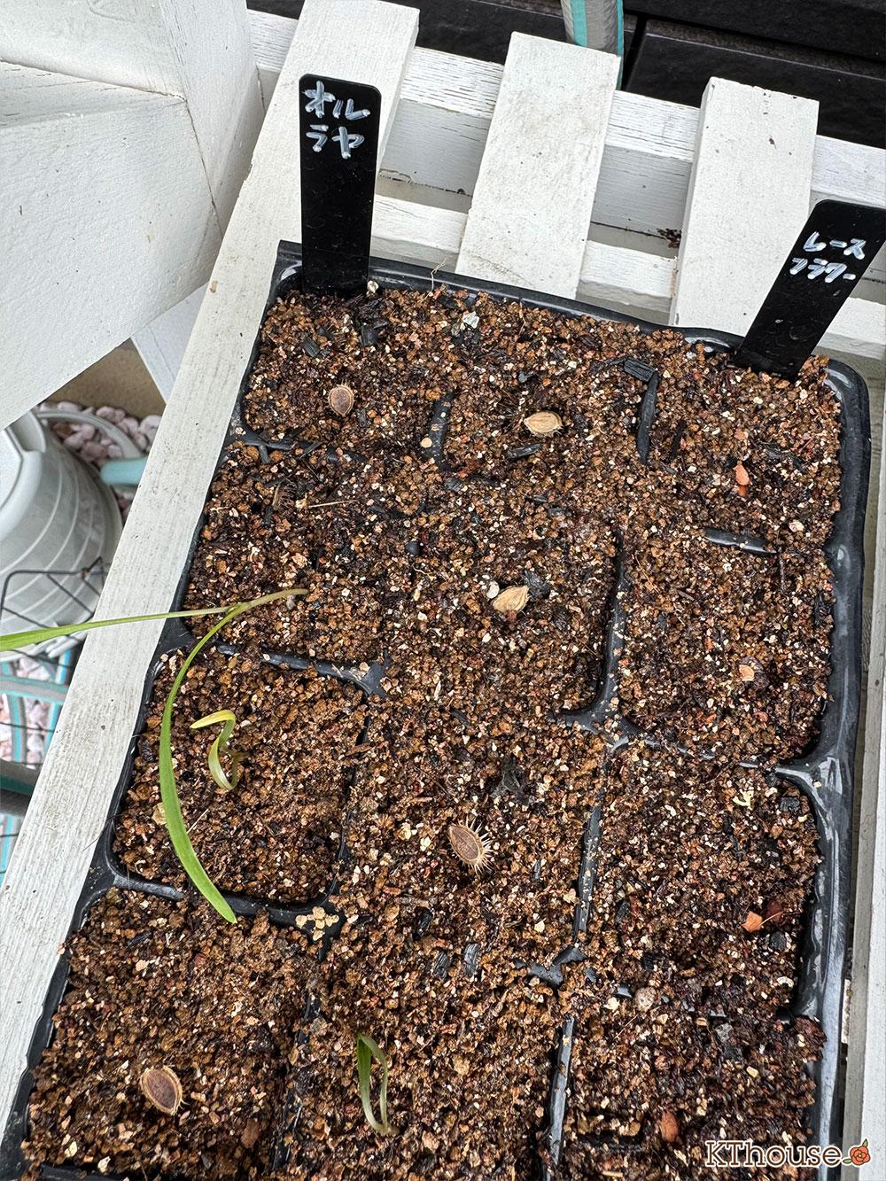 ポットは5ポット中1ヶ所発芽してるのを確認しました。