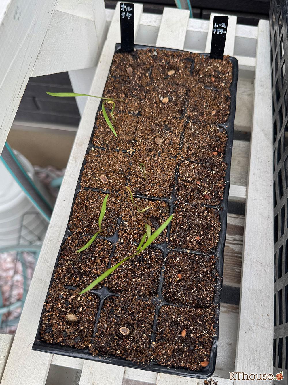 セルトレイの14ヶ所中、発芽箇所が4ヶ所に増えていましたが、少ないです😣
